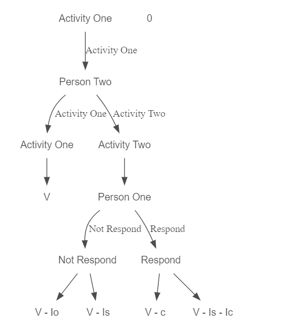 Cet arbitrage et cette possibilité pour autrui de répondre à mes actions a été représenté sous forme d’arbre de décision par Akerlof and Kranton (2000a)